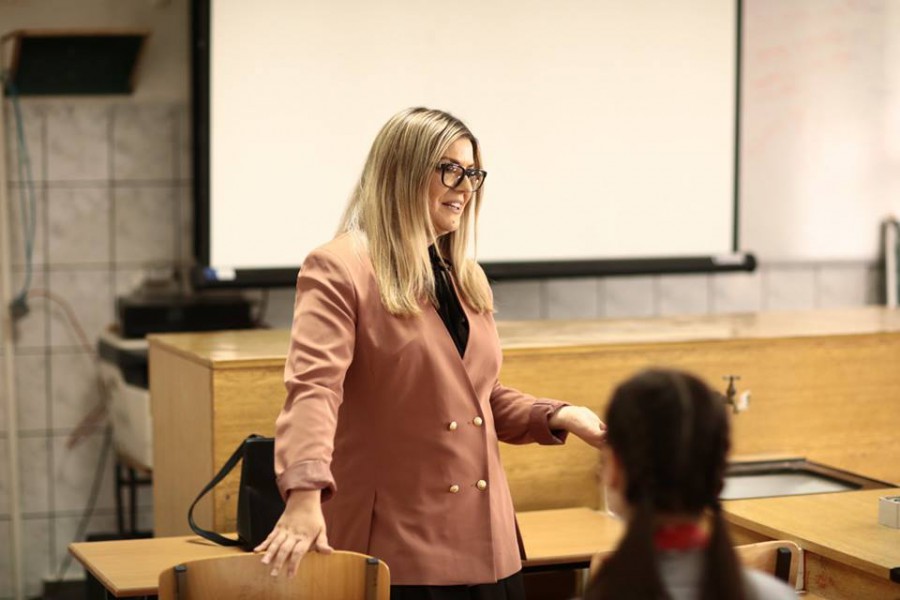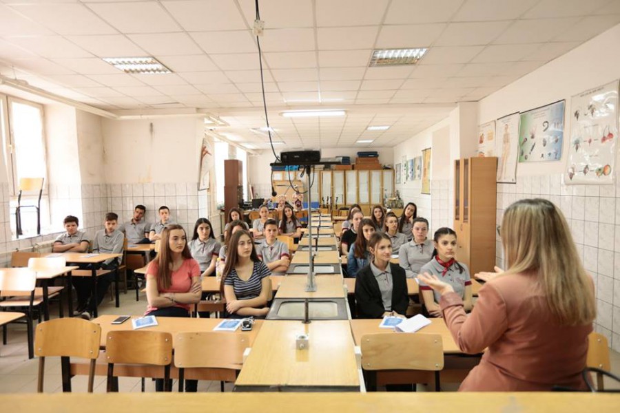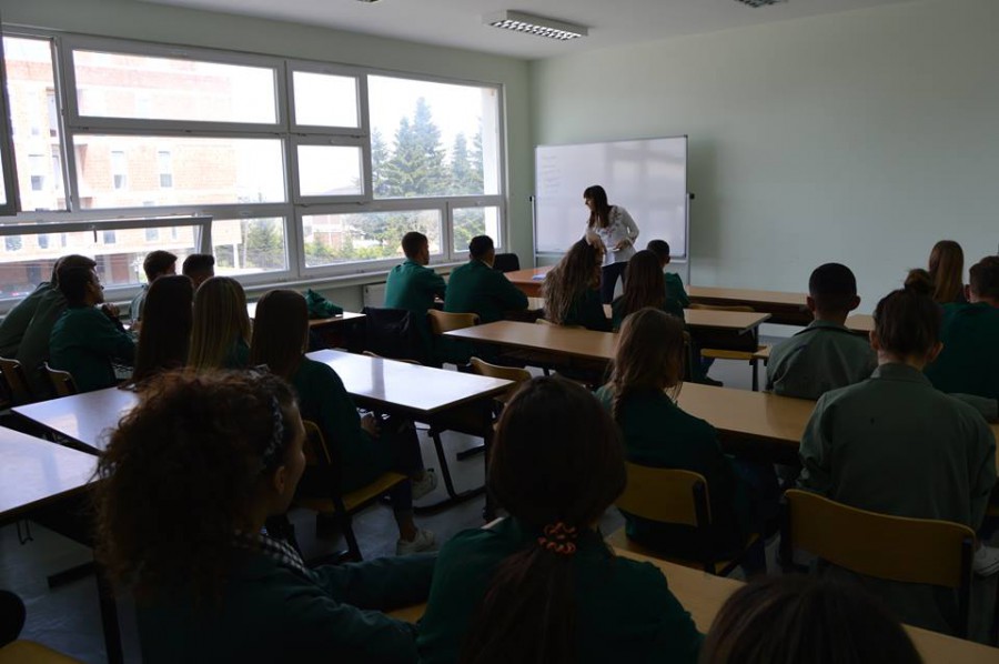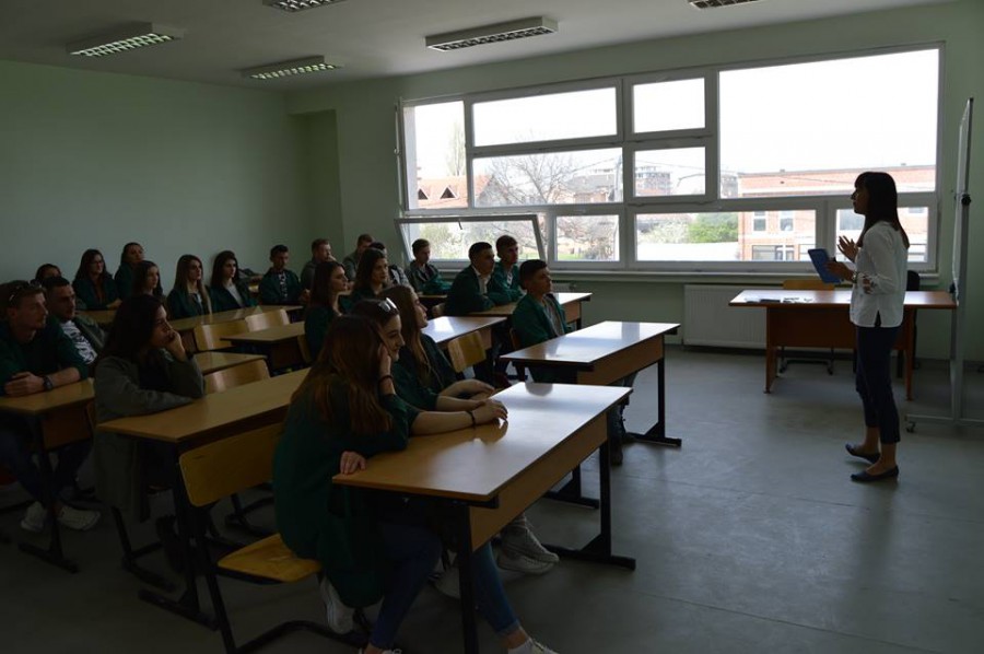 TLP Alumni Lavdi Zymberi holding a lecture for TLPAA Constitution Week 2018 and instilling respect for the Constitution of the Republic of Kosovo to students of Junuz Zejnullahu High School in Viti.