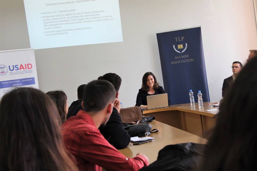 Committed to advancing a knowledge-sharing leadership culture, Shpresa Kaciku (TLP Professional Certificate) from the Democracy and Rule of Law Committee of the TLP Alumni Association, in cooperation with the Department of Political Science of University of Prishtina Professor Anton Vukpalaj, has organized the lecture “Civil Service of Republic of Kosovo: Challenges in the context of European Integration” for the students of Faculty of Philosophy of University of Prishtina.